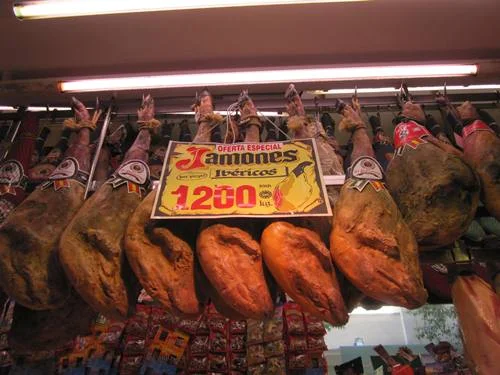 Meaty goodness at one of Madrid's many Museos del Jamon -- a cured meat chain there.
